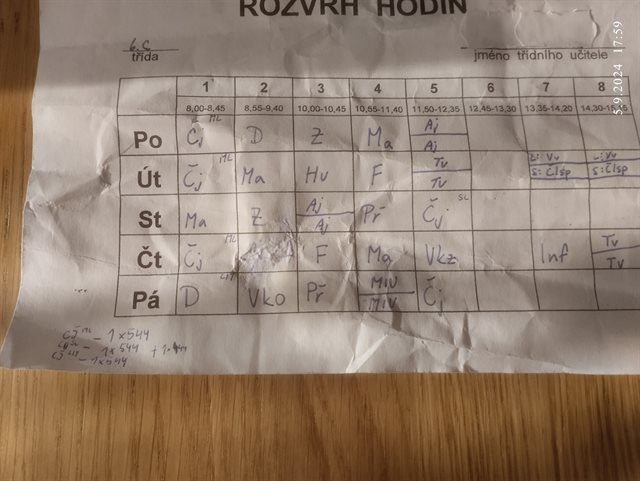 Až před chvílí jsem si všimla že sem psala už tečka o rozvrhu, ale nemůžeme mobily.